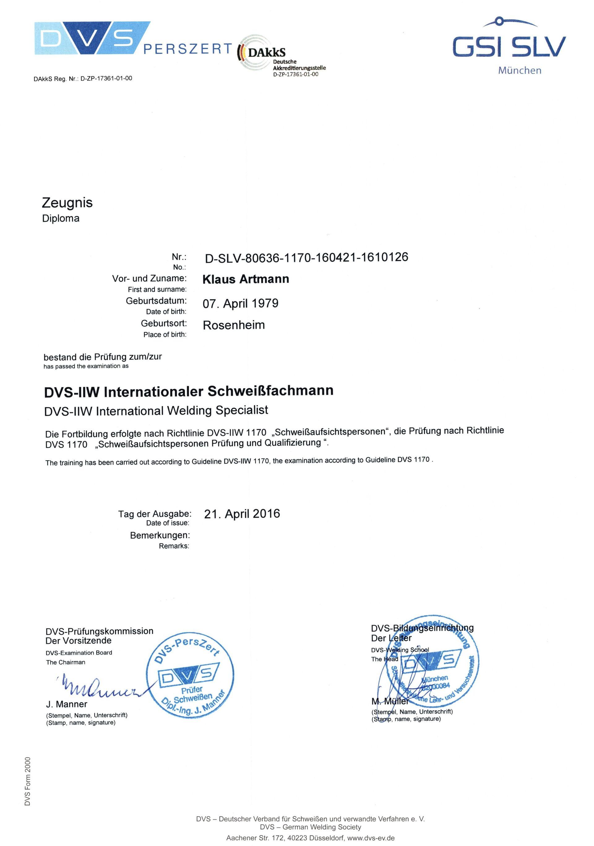 2016 ließ sich der Firmengründer zum Schweißfachmann fortbilden. In 2017 erfolgte die Zertifizierung nach DIN EN 1090. Ein Jahr später, 2018, wurde die bestehende Werkstatt um einen Hallenumbau erweitert.