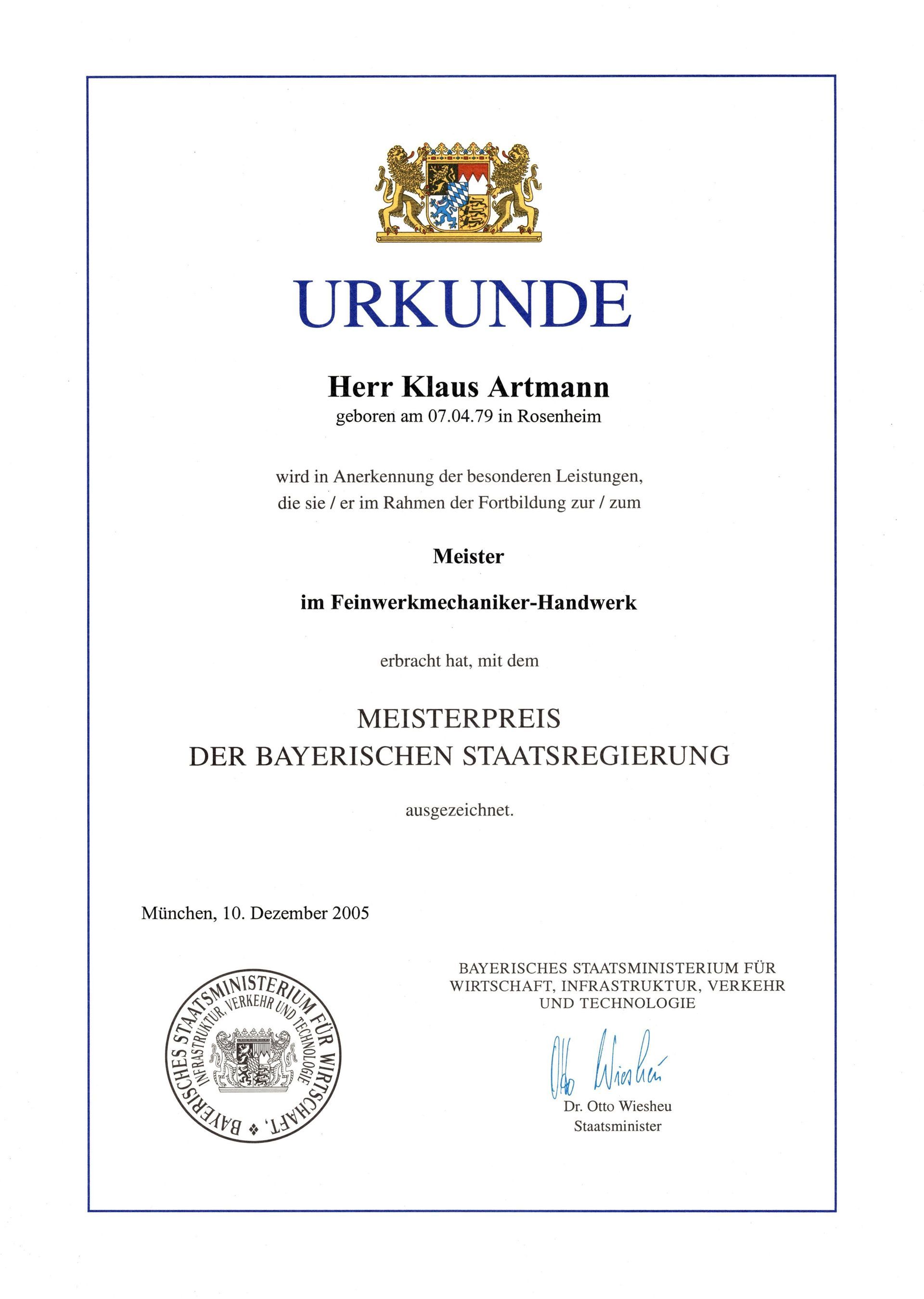mit dem Meisterpreis der bayerischen Staatsregierung